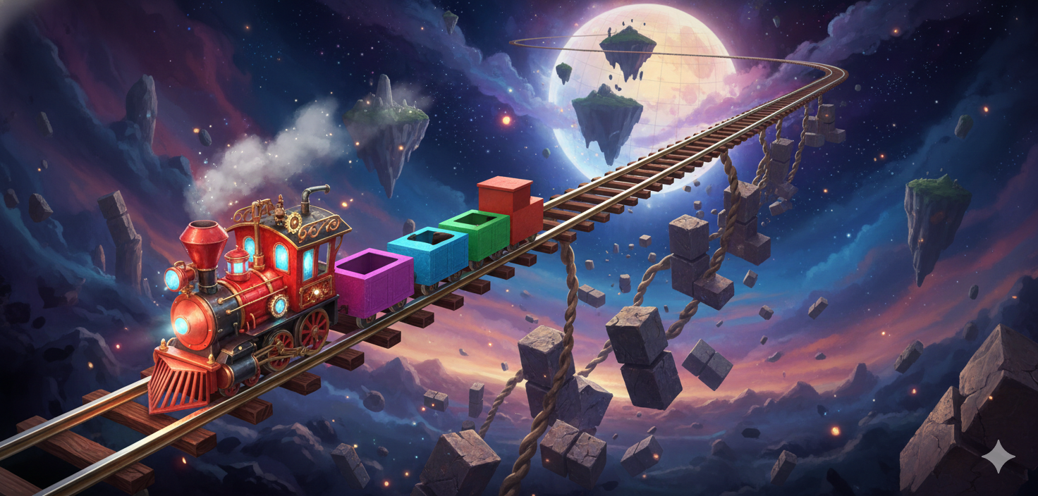 Build tracks for the train, collect gold.